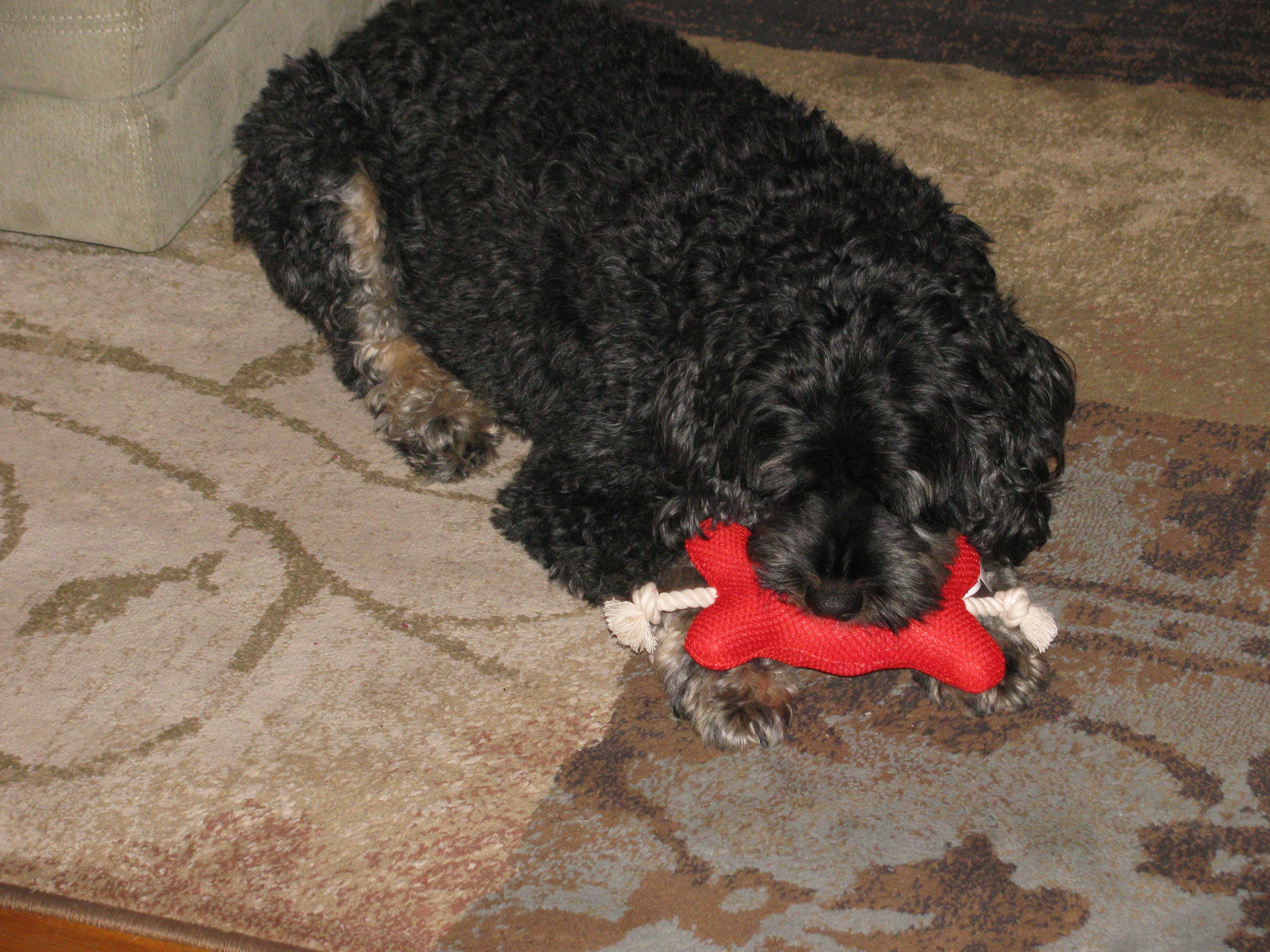 The mix of poodle and cocker spaniel really works. He is cute and cuddly and very, very intelligent. He’s eight now so he’s a little more relaxed than when he first arrived. One of the things that amazes me the most is that he never lived with children and had very limited exposure to them yet he has adapted remarkably well. He’s great with kids and extremely tolerant of anything that comes his way.