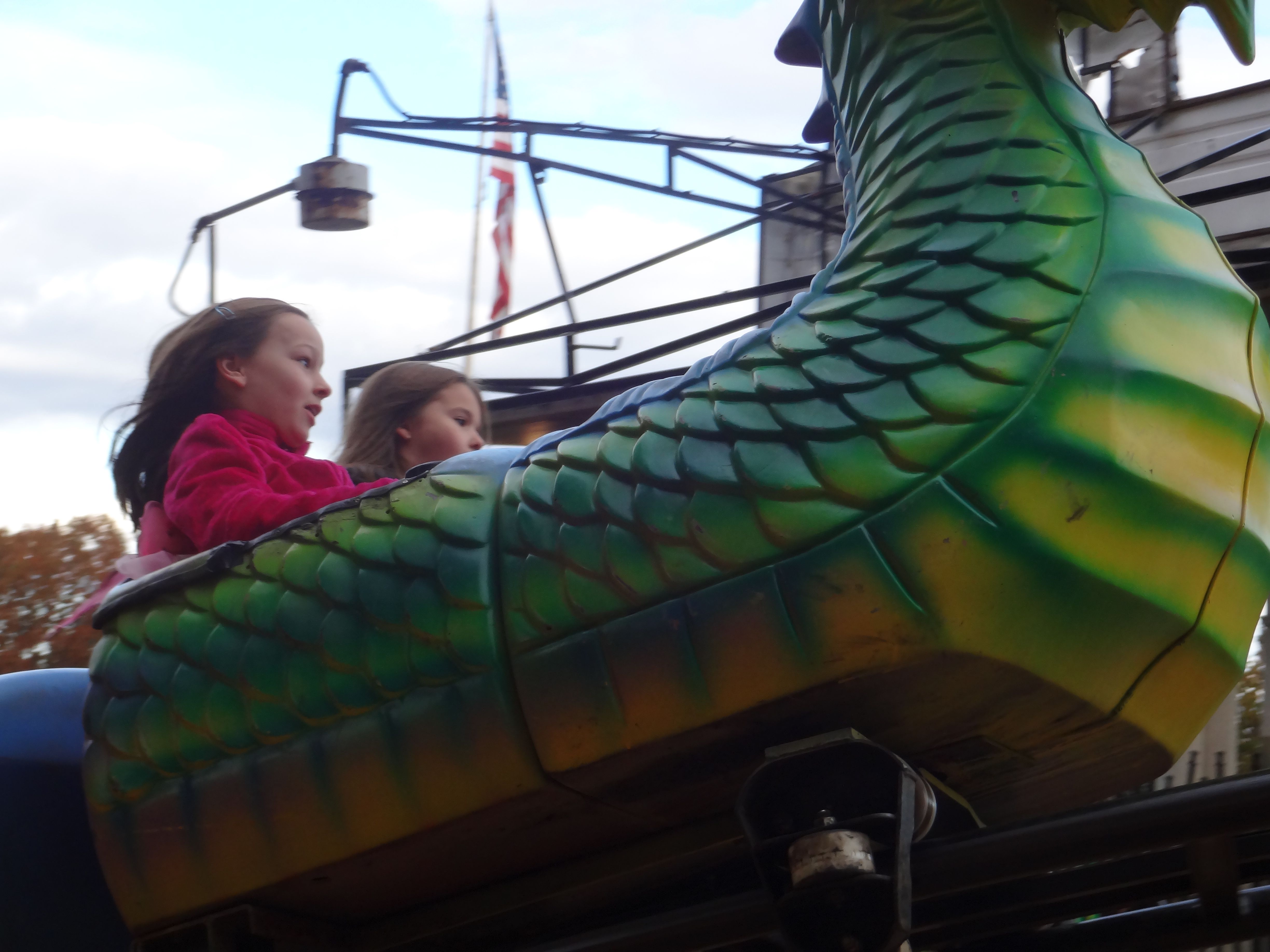 The girls flying on the “roller coaster” at the common