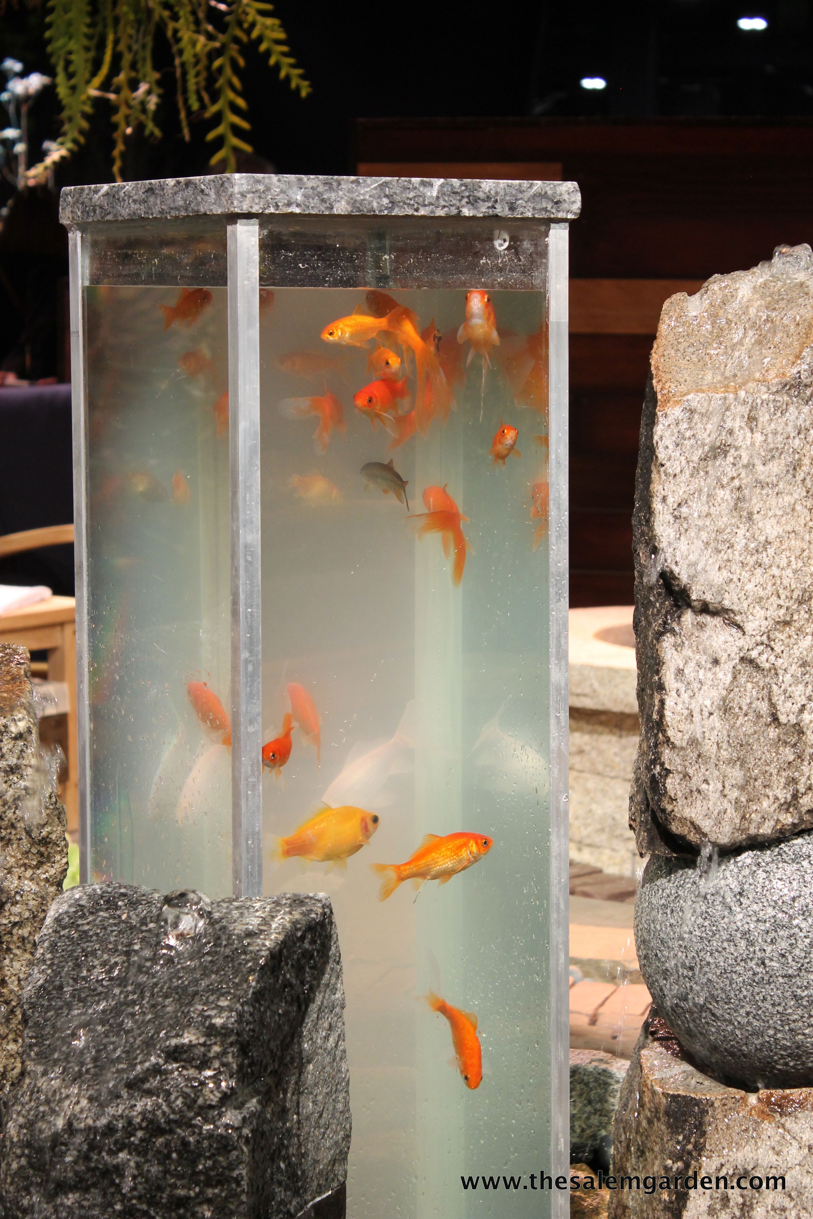 As the keeper of goldfish in two tanks in two locations I could only think that this interesting tank looked like a huge maintenance challenge. Really huge.