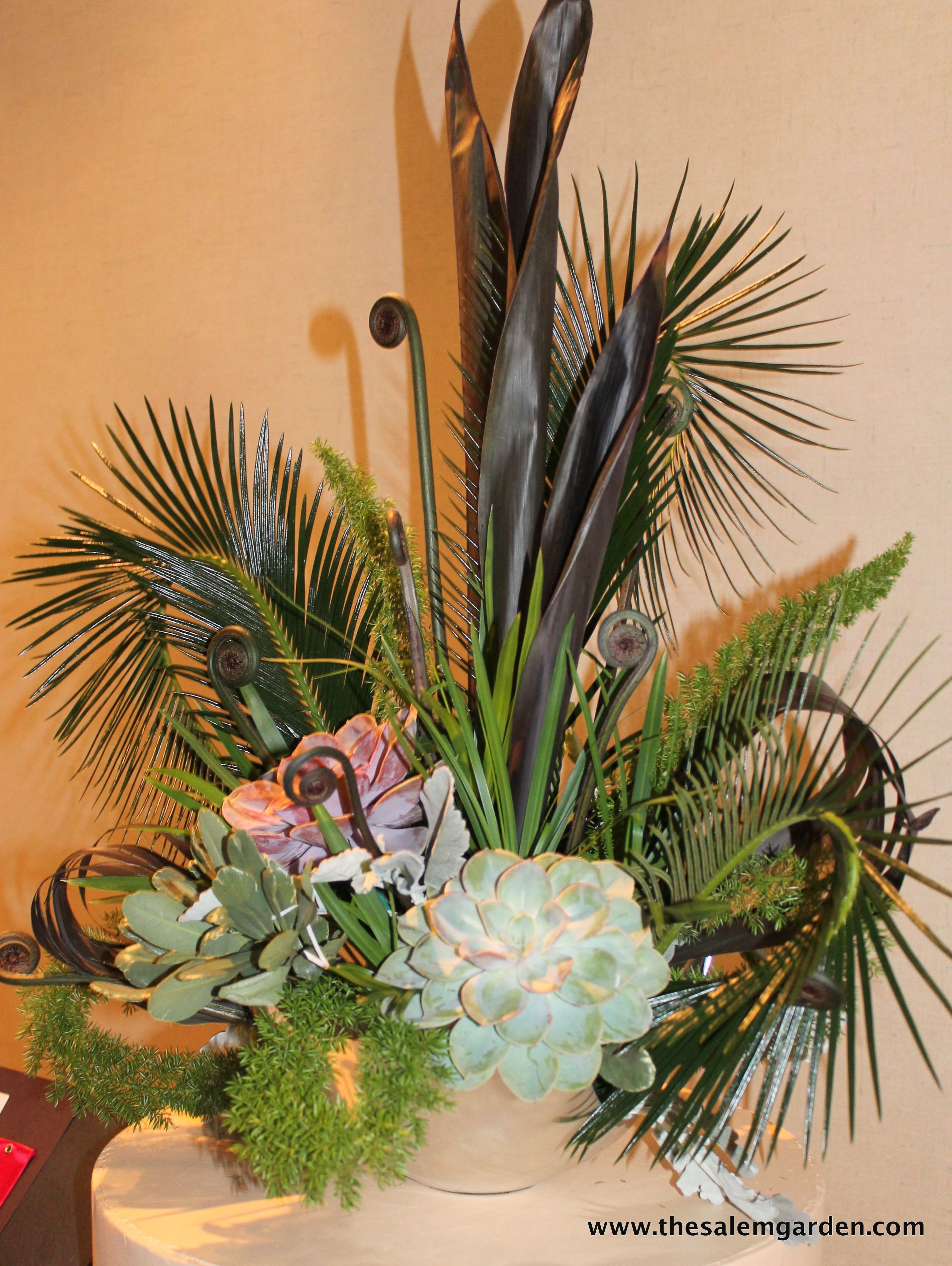 I love this use of succulents and ferns, an uncommon combination. This arrangement was in the competition area which was full of beautiful arrangements.