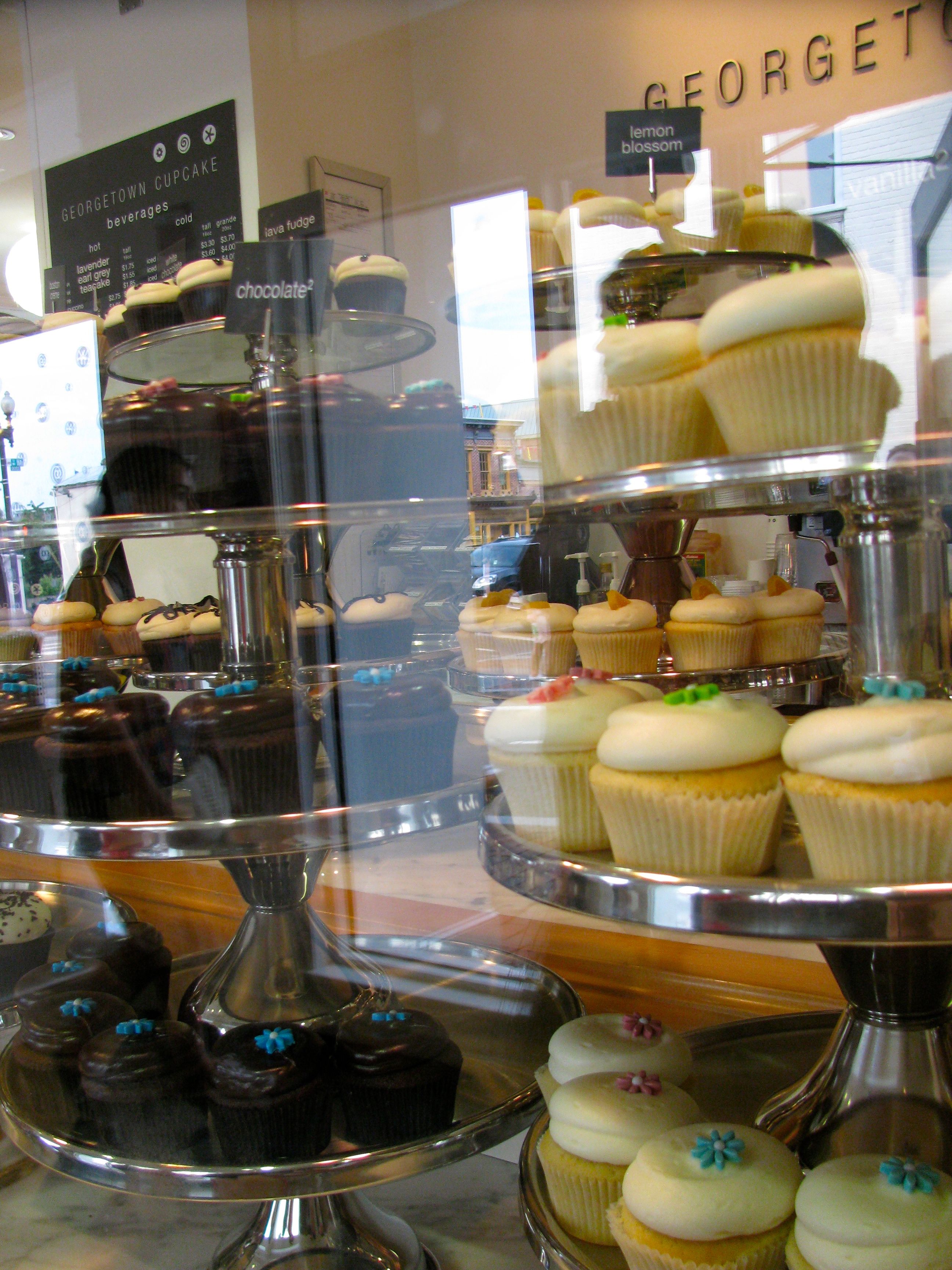 We visited lots of great museums, monuments and places of historical importance on our trip to Washington DC a few weeks ago. At the end of the day, after seeing all of those amazing places, it was all about the cupcakes for us! As I mentioned in yesterday’s post it was really, really hot. 108 degrees is hot! In spite of this, we still found some energy to check out the Georgetown Cupcake shop, home of the hit TLC show DC Cupcake. As we left the National Mall and drove a mile west the temperature went down eight degrees according to our car thermometer. Suddenly 100 degrees felt like air conditioning! We thought we could do anything! So we found a parking spot right on the Potomac River and took a hike up the hill to find the famous cupcake shop.