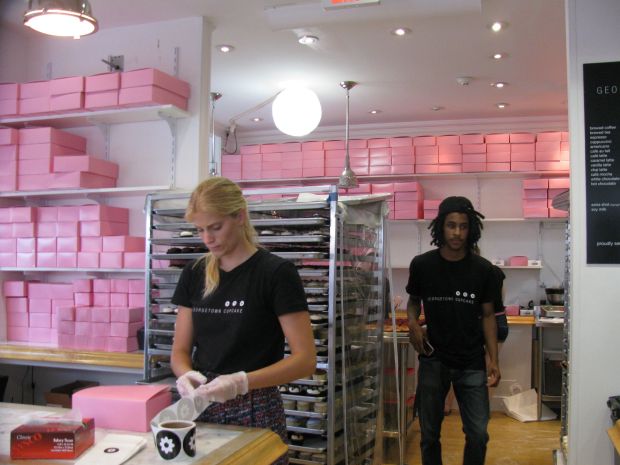 Here’s a view of the inside… many, many boxes and many, many cupcakes! It seemed like a pretty tight space. We wondered if there was a larger kitchen/baking area to the right…